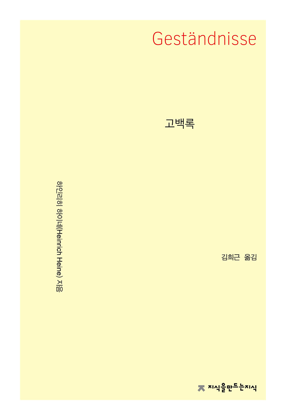 《고백록》은 하이네가 스스로의 삶을 정리하며 쓴 자서전적 작품이다. 이 책을 쓸 당시, 그는 척추 결핵 또는 납 중독으로 추정되는 병으로 인해 소위 ‘매트리스 무덤’에 갇혀 지냈다. 거의 눈이 멀고 몸이 마비된 상태에서 비서에게 구술하여 받아쓰기로 완성한 《고백록》. 그럼에도 이 책에는 하이네의 날카로운 시선이 살아 번득인다.