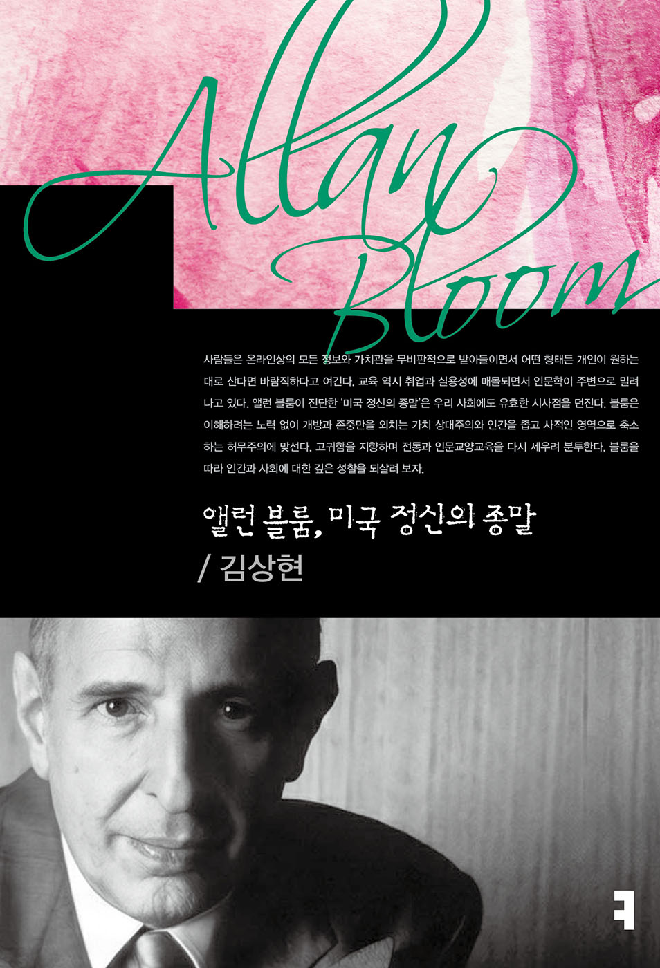 앨런 블룸은 현대 고등교육과 문화를 비판적으로 분석한 정치철학자다. 진지한 사고를 거부하는 가치 상대주의와 인간 영역을 축소하는 허무주의에 맞서 전통과 인문교양교육을 재건하려 분투했다. 고전 읽기와 대학 교육으로 젊은이들의 정신을 자양하려 했다. 인간과 사회에 대한 깊은 성찰에 바탕을 둔 건실한 교육과 문화의 실마리를 발견할 수 있다.