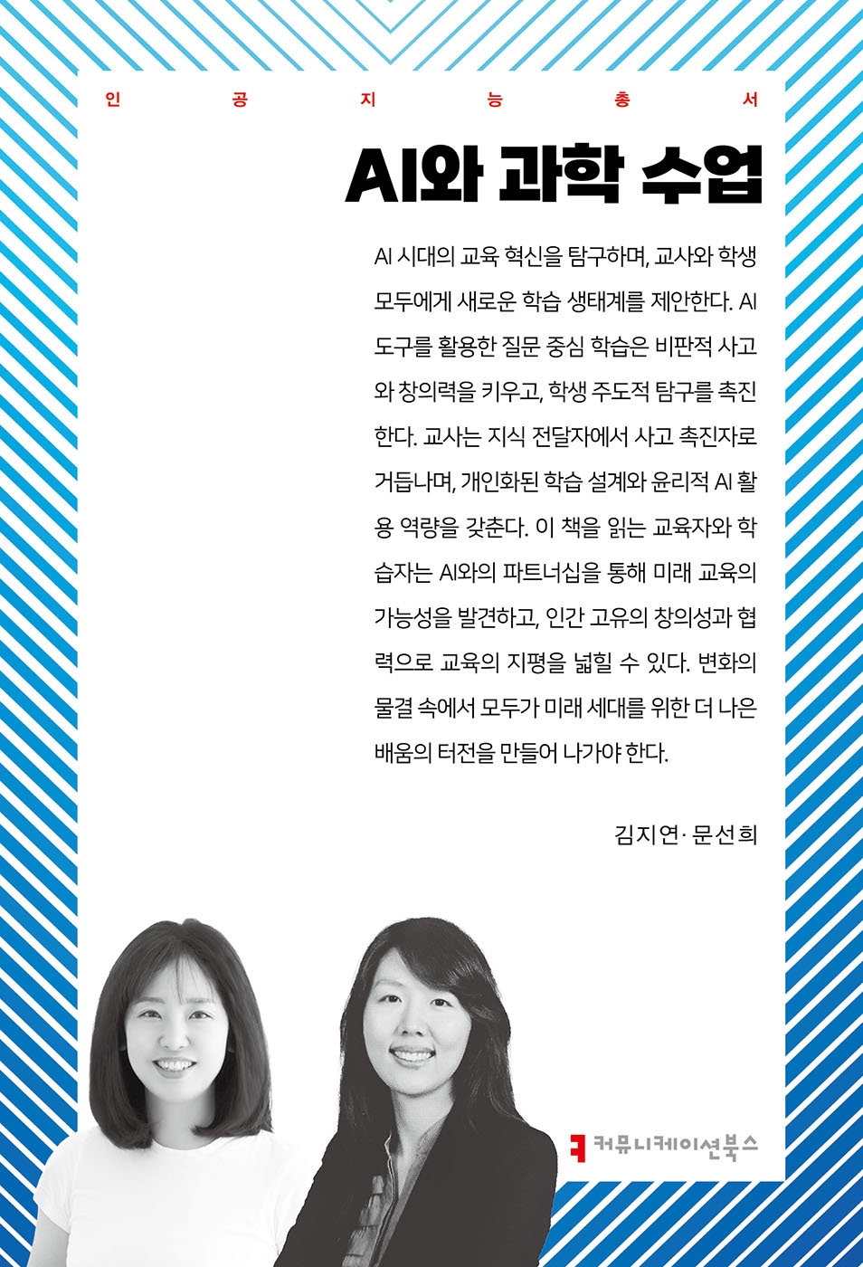AI는 과학 수업에서 실험을 시각화하고 개별 맞춤 학습을 지원하며, 학생의 탐구를 촉진하는 지능형 동반자다. 가능성과 위험을 함께 짚으며 교실 혁신의 방향을 제시한다. 인공지능총서. aiseries.oopy.io에서 필요한 인공지능 지식을 찾을 수 있다.