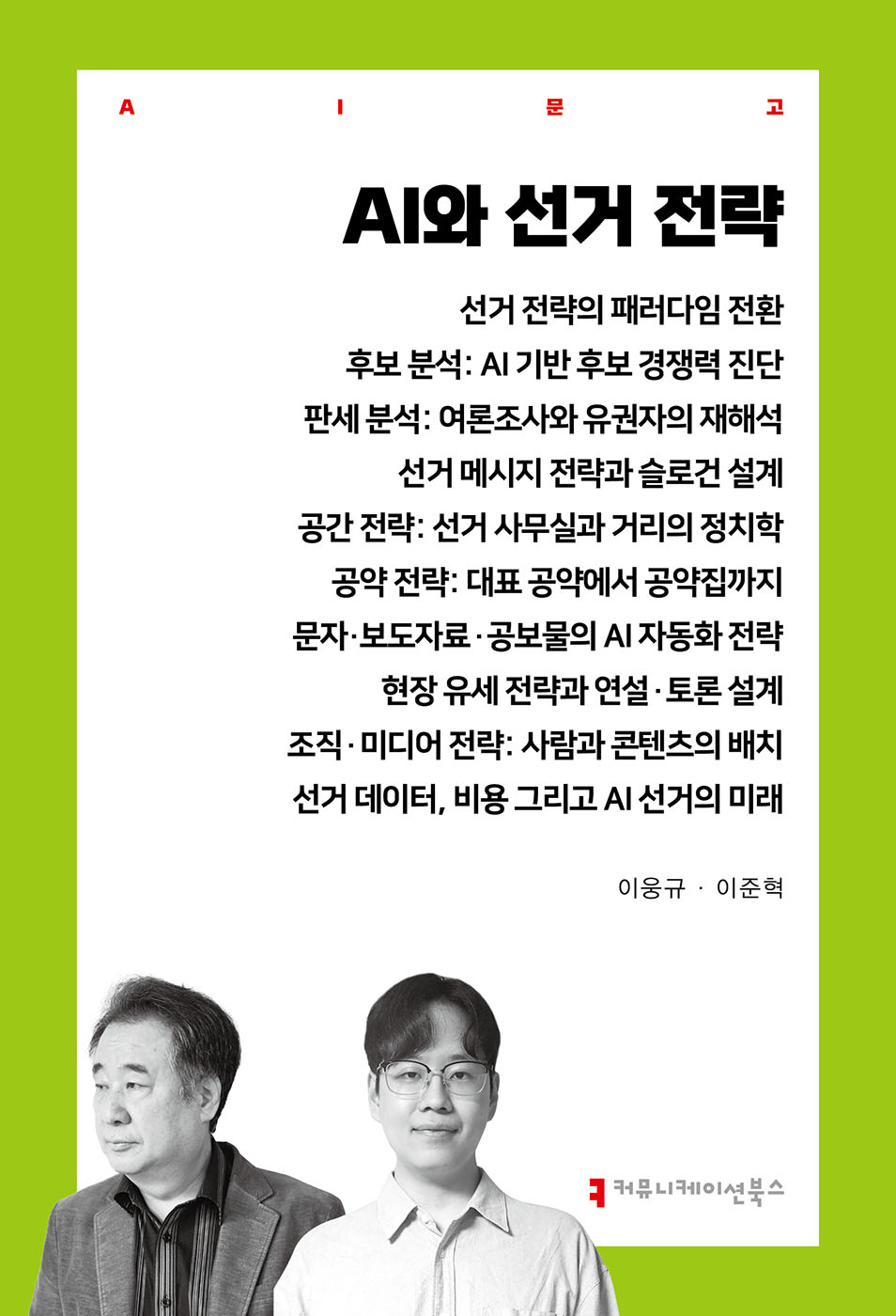 선거는 감이 아니라 데이터와 AI로 설계되는 시대에 들어섰다. 예측 AI와 생성형 AI를 결합한 최신 선거 전략을 제시하며, 유권자 초개인화 타기팅과 실시간 의사 결정 구조를 분석한다. 동시에 윤리와 민주주의의 문제를 함께 짚으며, 승리를 설계하는 새로운 전략 기준을 제시하는 책이다. AI문고. aiseries.oopy.io에서 필요한 인공지능 지식을 찾을 수 있다.