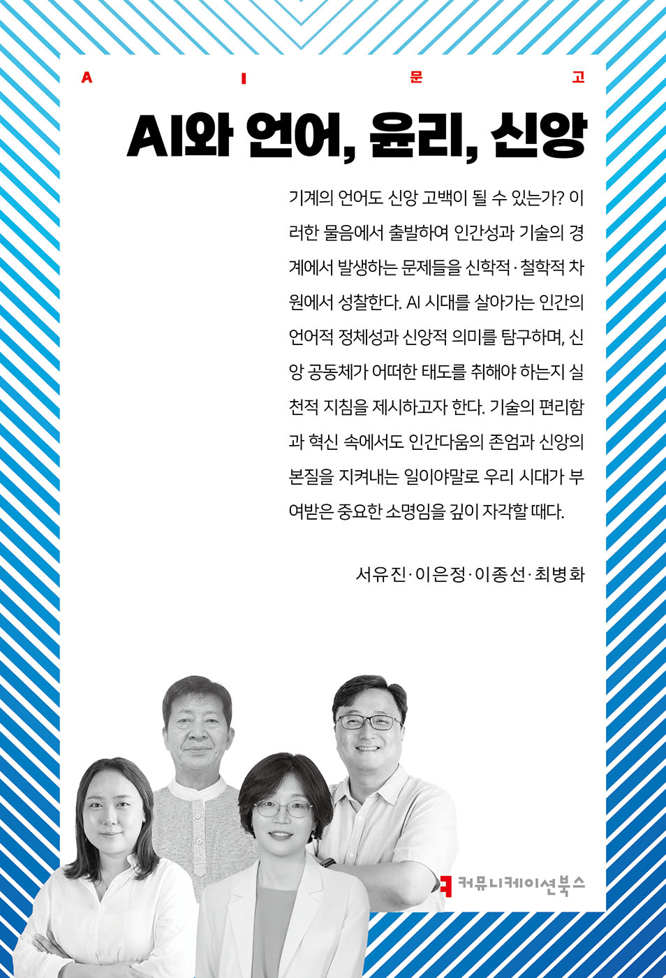 기계가 언어를 생성하는 시대에 인간 정체성과 신앙의 본질을 다시 묻는다. 언어는 단순한 소통 수단이 아니라 인간이 세계와 관계 맺고, 공동체를 형성하며, 하느님 앞에서 자신을 고백하는 방식이다. 그러나 AI 언어가 인간의 말과 유사한 형태로 생산되는 오늘, 우리는 언어의 고유성이 흔들리는 장면을 목격한다. 이 책은 아리스토텔레스의 로고스 개념과 기독교 신학의 말씀 이해를 토대로, 인간 언어와 기계 언어의 본질적 차이를 분석한다. 또한 스티글레르, 해러웨이, 라투르의 기술 철학을 경유하여 인간과 기술의 혼성 시대를 진단한다. 나아가 책임 윤리, 청지기적 분별, 공동체적 기준이라는 세 축을 통해 신앙 공동체가 취해야 할 실천적 방향을 제시한다. 기술을 거부하거나 맹목적으로 수용하는 대신, 인간성과 신앙의 고유성을 지키는 길을 모색하는 사유의 기록이다.