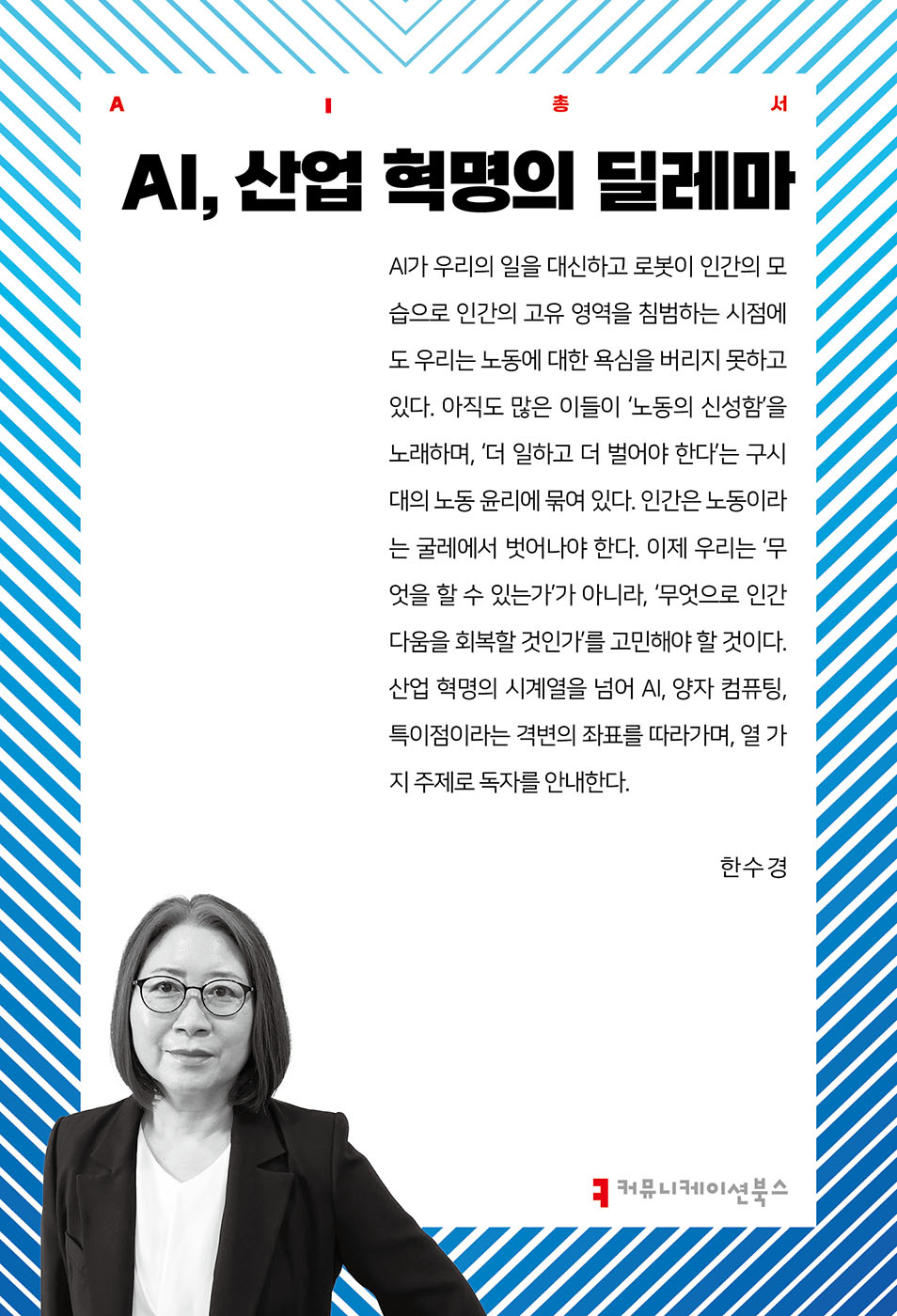 증기 기관에서 AI·양자 컴퓨팅으로 이어지는 산업 변혁을 하나의 연속선으로 묶어, 기술이 인간의 노동·정체성·가치를 어떻게 재구성하는지를 분석한다. 창조적 파괴 이후에도 인간에게 일자리가 남을 것이라는 오래된 믿음에 의문을 던지며, 특이점과 기술적 실업의 시대에 인간이 어떤 존재가 되어야 하는지 근본적 질문을 제기한다. AI총서. aiseries.oopy.io에서 필요한 인공지능 지식을 찾을 수 있다.
