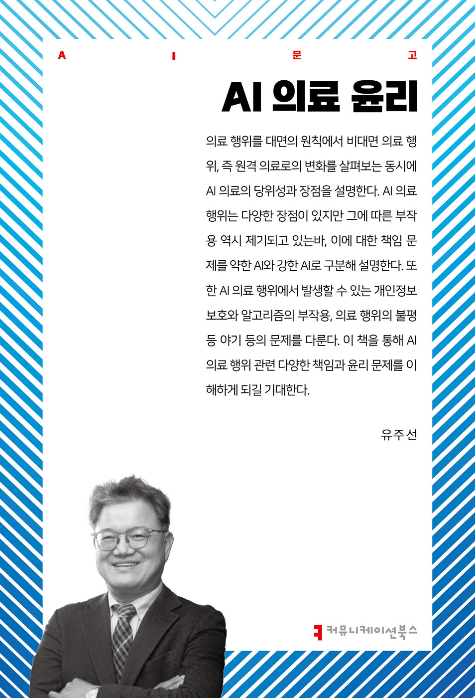 원격 의료의 확산은 AI 의료 행위를 현실 과제로 만들었다. 이 책은 대면 진료 원칙과 예외, 의료 책임의 특수성을 정리하고, 빅데이터·알고리즘 기반 AI 진단의 가능성과 한계를 짚는다. 개인정보 보호, 공익적 활용, 약한 AI·강한 AI 책임 분배, 윤리 규범까지 다룬다. AI문고. aiseries.oopy.io에서 필요한 인공지능 지식을 찾을 수 있다.